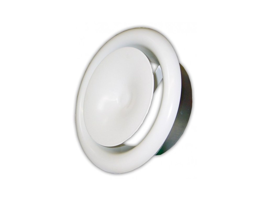 Kovový taliřový ventil se používá pro přívod vzduchu. Umistěni do stropu. podhledu,zdi atd. Nastavitelný středový disk umožňuje regulaci množství a tvaru proudu vzduchu, poloha disku se fixuje kontramatkou. Pracuje v rozsahu teplot -20"C aZ +140`C