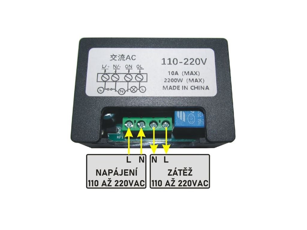 - Typ relé: relé s přepínacím kontaktem 250VAC/10A