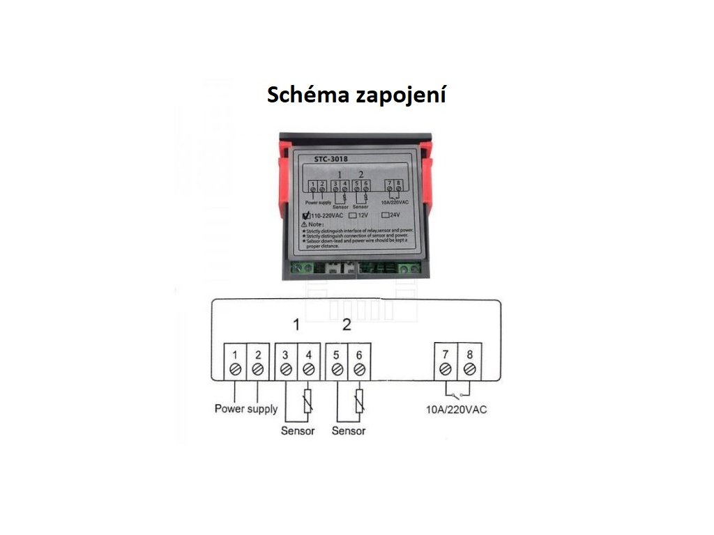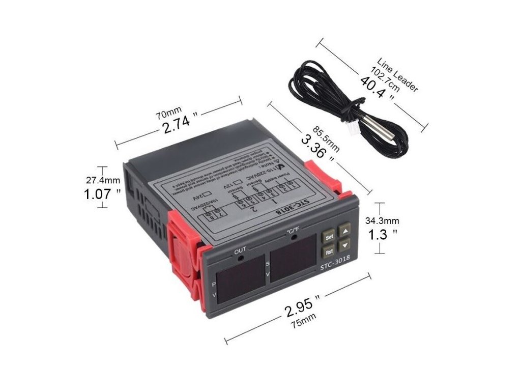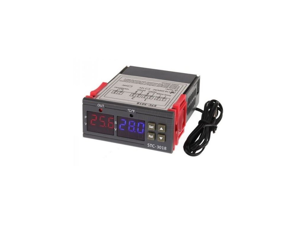Malý termostat STC-3018 je ideální volbou pro přesné a spolehlivé řízení teploty k ovládání spotřebiče určeného pro vytápění i chlazení. Duální termostat s externí teplotní sondou o délce 1 m a jedním okruhem s výstupním relé. Umožňuje regulovat teplotu v rozmezí -55°C ~ 120°C s rozlišením 0.1°C. Duální displej pro zobrazení aktuální a požadované teploty.
