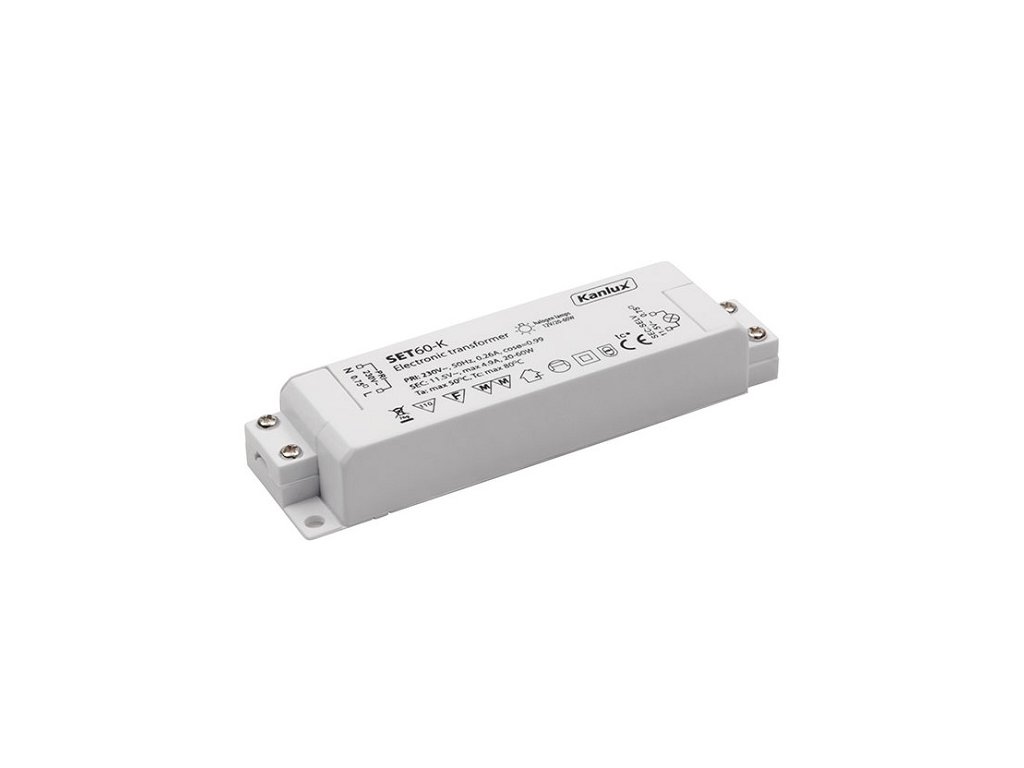 Elektronický, elektronické, transformátor, trafo, měnič, napětí, 220V, 230V, -AC/12V-AC, 20-60VA. Vestavěné pojistky proti přehřátí, zkratu a přetížení. Trafo je určené k napájení 12V halogenových žárovek typ MR-11, MR-16, JC.