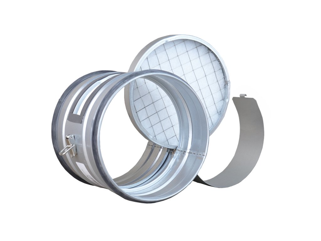 Filtr do vzduchotechniky, pro, vzduchotechnické, ventilační potrubí o průměru 150 mm Dalap KAP 150. Filtr je vyroben z pozinkovaného plechu, který je odolný do teploty až 60 °C.