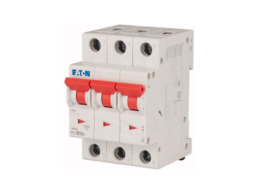 Jistič, jističe, 3 fázový, třífazový, třífázové, trojfázový, elektrický, elektro, zásuvkový, motorový, proudový, 3P, třípólový, trojpólový, na DIN lištu, do rozvaděče, hlavní, třímodulový, trojmodulový, slouží k ochraně elektrických obvodů proti přetížení a zkratu. Jističe Eaton jsou určeny pro nadproudovou ochranu elektrických vedení a zařízení nízkého napětí. Splňují požadavky norem ČSN EN 60898, příp. ČSN EN 60947-2.