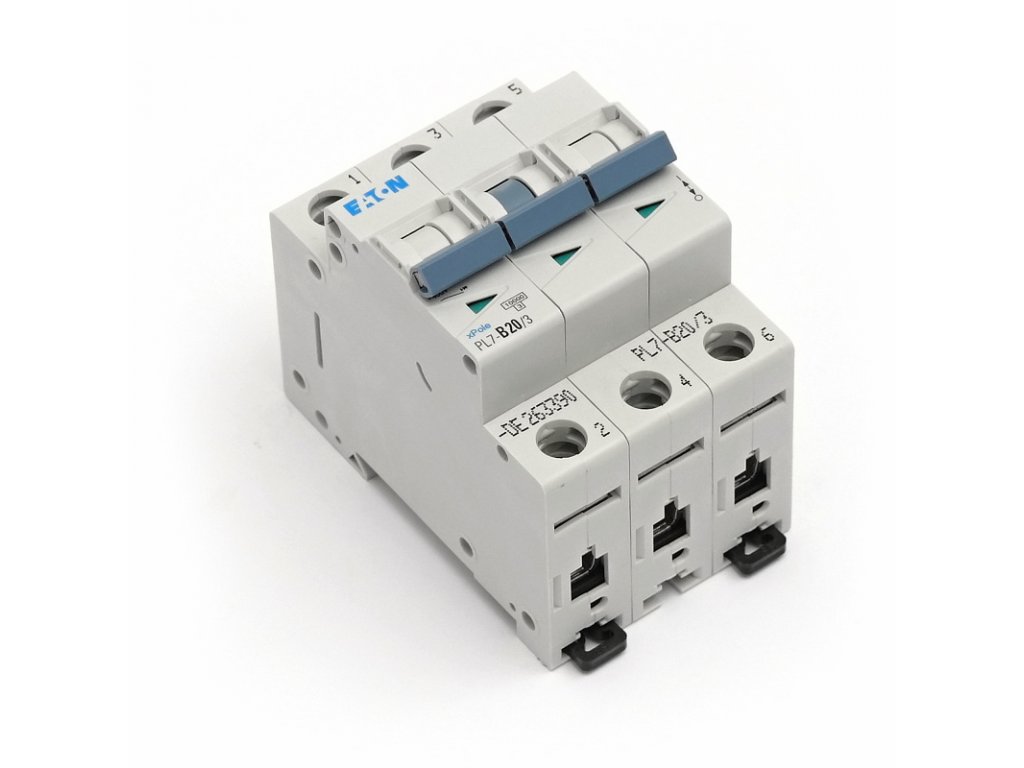 Jistič, jističe, 3 fázový, třífazový, třífázové, trojfázový, elektrický, elektro, zásuvkový, motorový, proudový, 3P, třípólový, trojpólový, na DIN lištu, do rozvaděče, hlavní, třímodulový, trojmodulový, slouží k ochraně elektrických obvodů proti přetížení a zkratu. Jističe Eaton jsou určeny pro nadproudovou ochranu elektrických vedení a zařízení nízkého napětí. Splňují požadavky norem ČSN EN 60898, příp. ČSN EN 60947-2