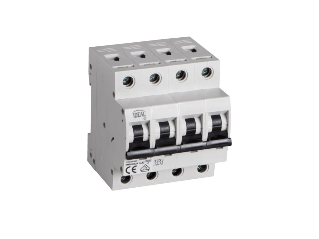 Typ jističe 32A/4/C počet pólů 4, vypínací charakteristika C, vypínací schopnost 6 kA, jmenovitý proud 32A, jmenovité napětí 230V AC. Shoda s normami PN-EN 60898-1.