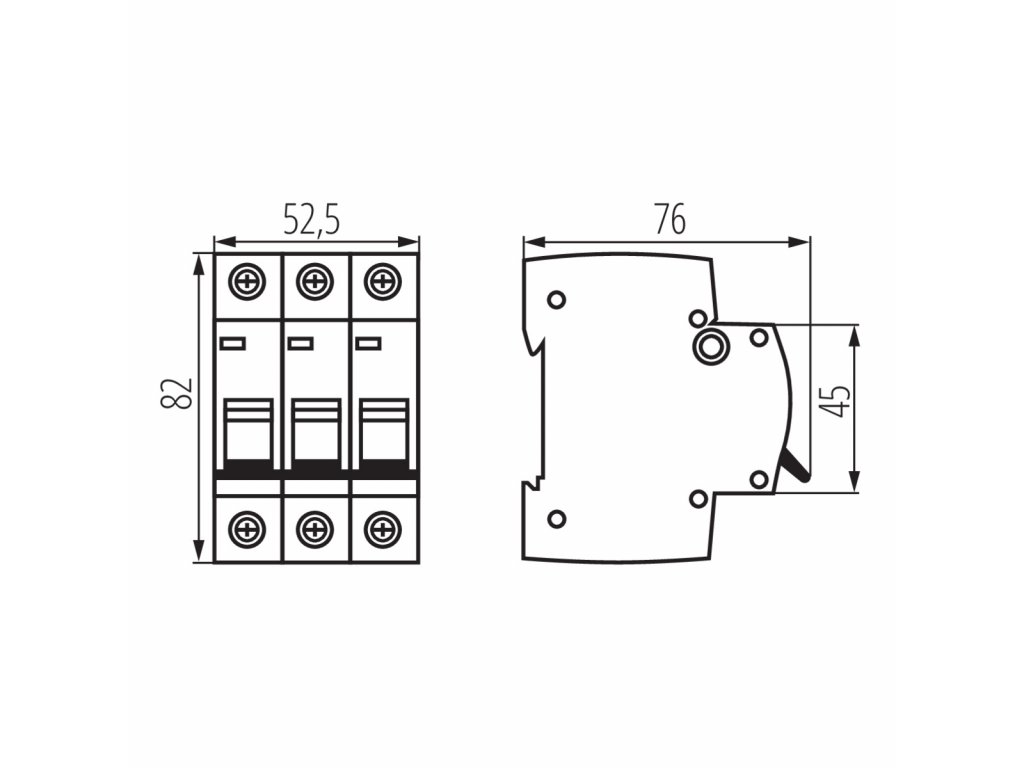 Popis: Jistič Kanlux KMB6 je rozměrově shodný s jističi, Eaton (Moeller), 50A/3/B počet pólů 3, vypínací charakteristika B, jmenovitý proud 50A, jmenovité napětí 400V. Shoda s normami EN60898-1/IEC60898-1.