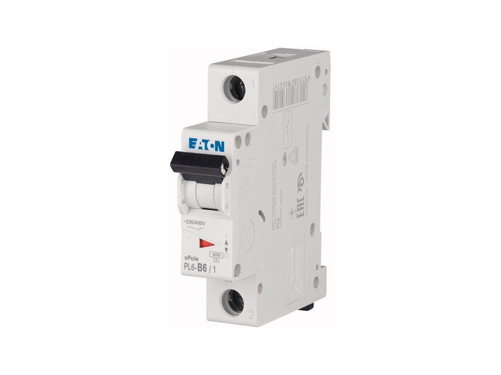 Jednomodulový jistič Eaton PL6-B6/1 slouží k ochraně elektrických obvodů proti přetížení a zkratu. Jističe, Eaton jsou určeny pro nadproudovou ochranu elektrických vedení a zařízení nízkého napětí. Splňují požadavky norem ČSN EN 60898-1.