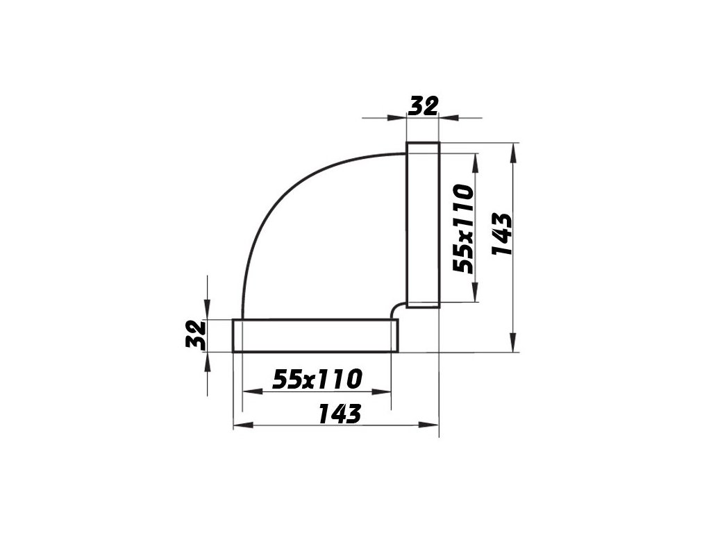 Koleno pro čtyřhranné potrubí vodorovné 110x55 mm PVC 5251p