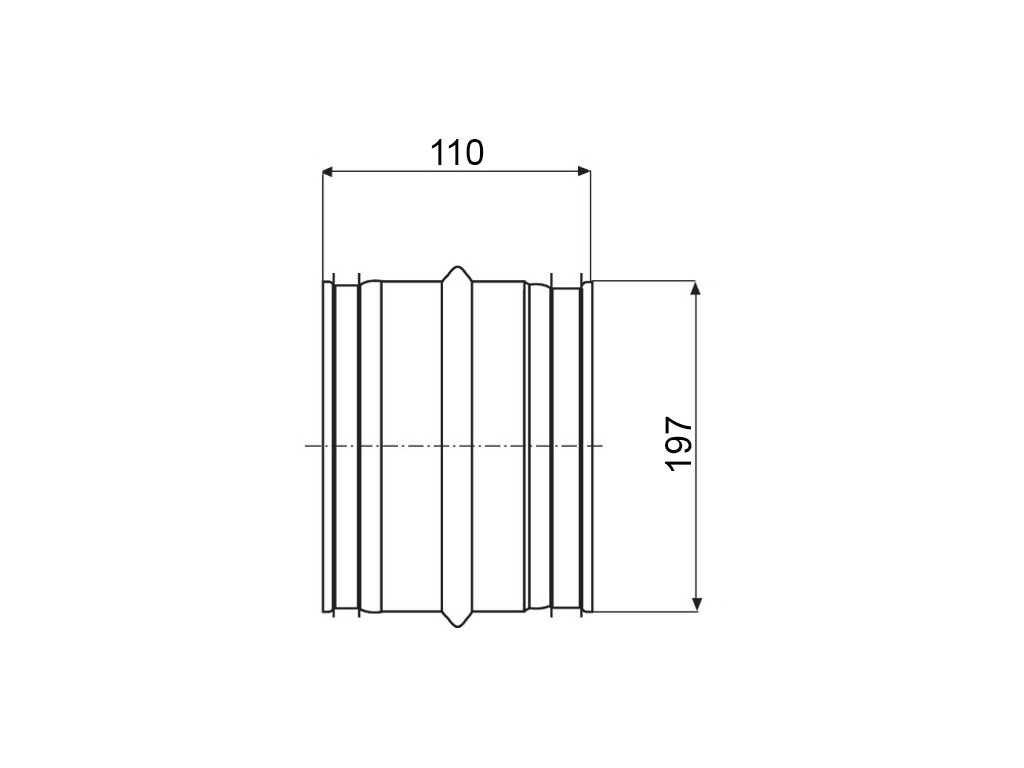 Vnitřní kovová spojka s gumovým těsněním Dalap PM-O 200 slouží ke spojení kulatých vzduchotechnických potrubí (například Spiro apod.).