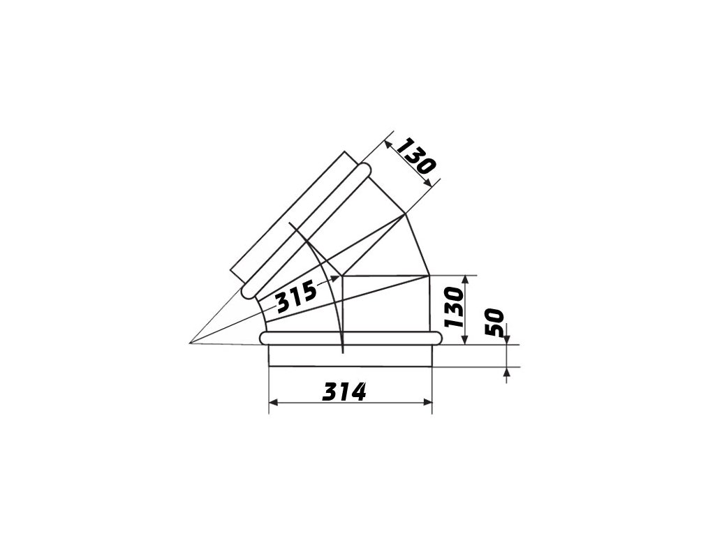 Kovové vzduchotechnické koleno Ø 315 mm s úhlem 45° se využívá k napojení potrubí nebo komponentů. Koleno má dlouhodobou životnost. Jeho montáž je jednoduchá, bez použití složitého nářadí (spoje se do sebe jednoduše nastrčí). Koleno je vyrobeno z pozinkovaného plechu a určeno do teploty 100 °C.