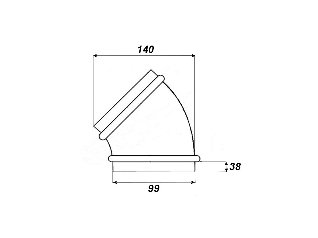 Kovové koleno pro kruhové potrubí 45 st./ 100 mm s těsnící gumou