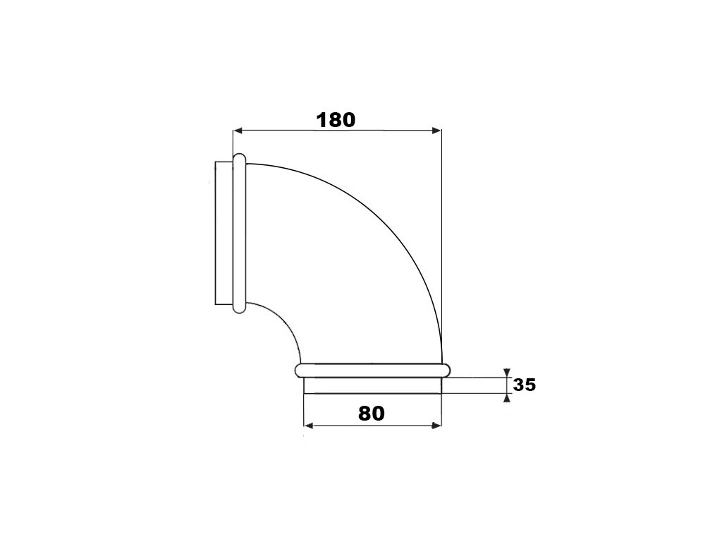 Kovové koleno pro kruhové potrubí 90 st./ 80 mm s těsnící gumou
