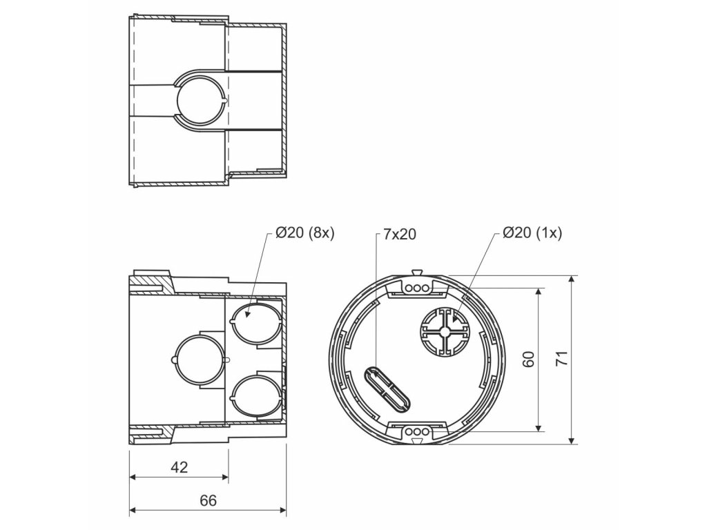 Krabice je určena pro vnitřní prostory. Umožňuje montáž přístrojů s větší hloubkou (např. přepěťovou ochrannou) nebo odbočení vedení pod přístrojem. Při montáži přístrojů s vícenásobným rámečkem lze krabice navzájem spojit. Umožňuje montáž dvojzásuvky.