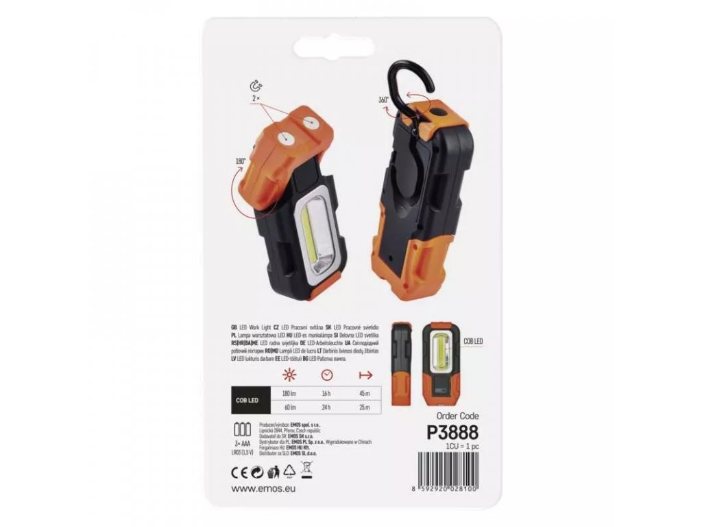 LED COB svítilna pracovní P3888, 180lm 3xAAA
