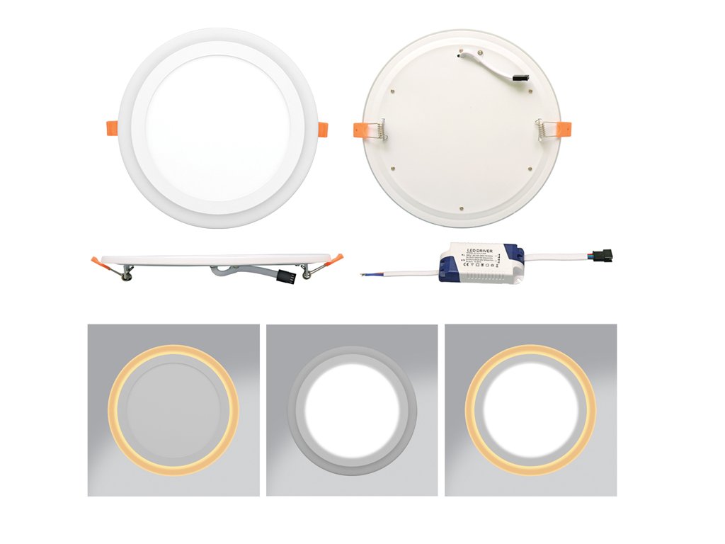 Podhledová svítidla DUO přináší oproti běžným vestavným svítidlům komfort a svobodu ve volbě teploty chromatičnosti (barvy světla), čehož je docíleno pomocí 2 typů vysoce úsporných LED SMD čipů s teplotou 2700K a 4000K. Přepínání mezi teplotami se provádí pomocí běžného nástěnného vypínače, kterým nastavíte vždy jeden ze 3 módů: dekorativní vnější prstenec (2700K) / vnitřní kruh (4000K) / obojí (2700+4000K).