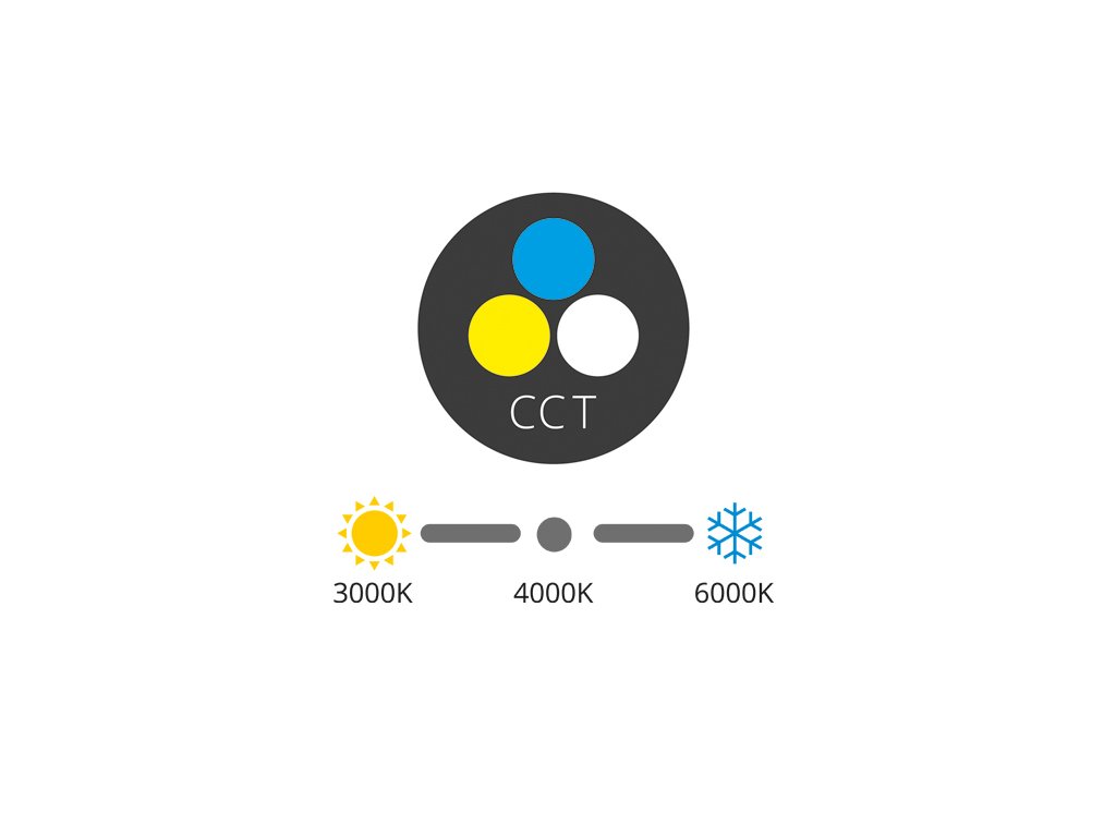 barva světla: CCT - 3000K – teplá bílá, 4000K – neutrální bílá, 6000K – studená bílá