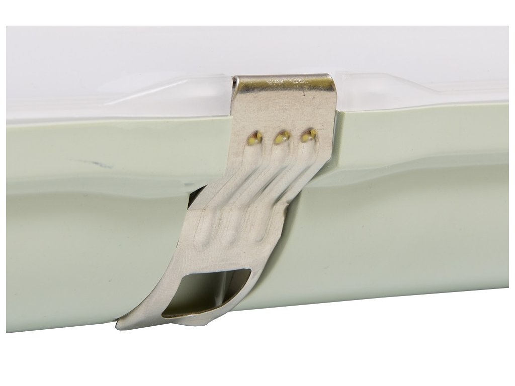 Tento model prschotěsného svítidla je vybaven nerezovými sponami a umožňuje průběžnou montáž 3F.