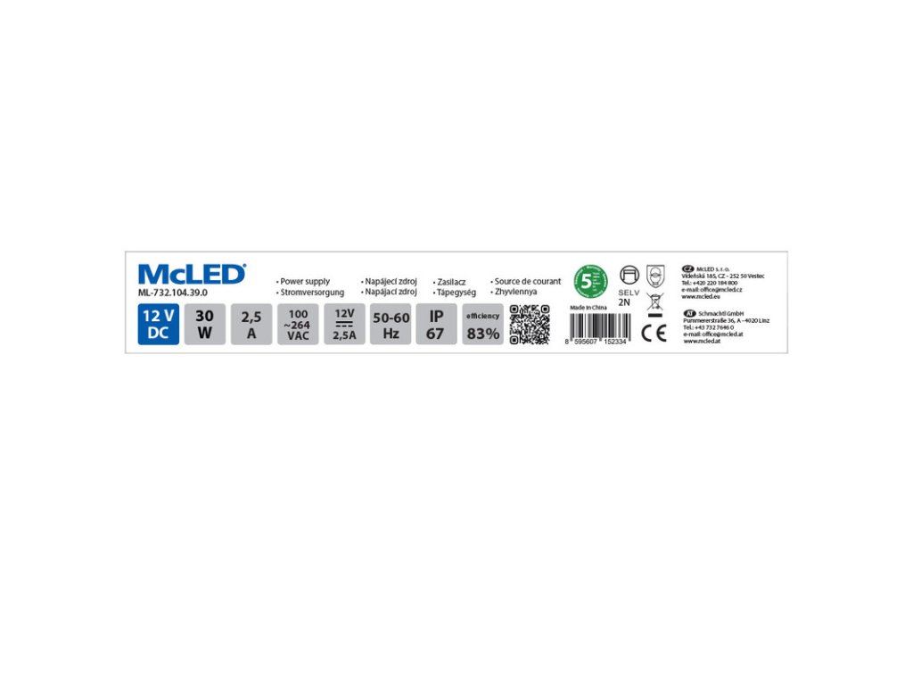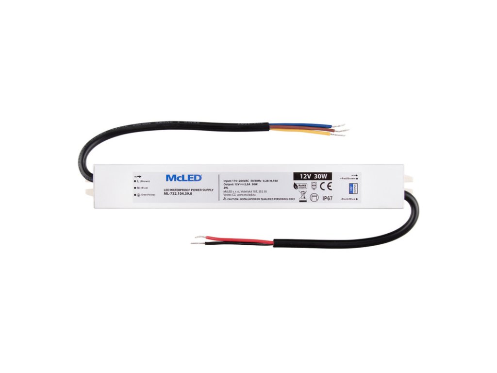 LED napájecí zdroj McLED 12V DC 2,5A/30W ML-732.104.39.0 disponuje dobrým poměrem cena/výkon od prověřeného výrobce McLED.