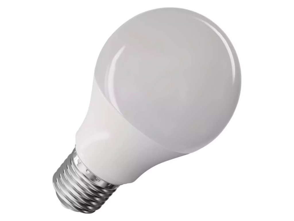 LED žárovka E27 v klasickém designu typu A60. Matně bílá baňka ve tvaru tradiční žárovky pro dokonalý rozptyl vyzařovaného světla. V tomto případě teplé bílé světlo s teplotou chromatičnosti 2 700 K.