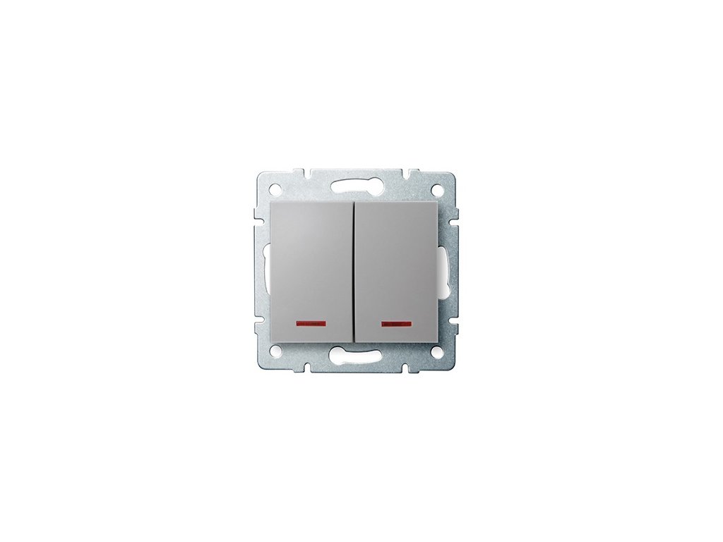 Kanlux, Mowion, LOGI, spínač, spínače, vypínač, vypínače, tlačítko, tlačítka, dvojité, dvojtlačítko, světla, osvětlení, na, pro, světla, světlo, č.1/0+1/0, s, LED, diodou, kontrolkou, stříbrný, bez rámečku, tlačítko slouží k zapnutí a vypnutí osvětlení.