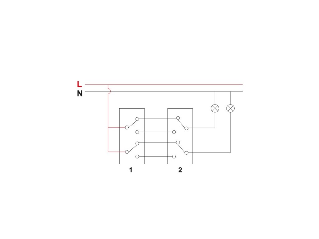 Kanlux, Mowion, LOGI, tělo, přístroj, spínač, spínače, vypínač, vypínače, světla, osvětlení, na, pro, světla, světlo, č. 5B, 6+6, dvojitý. dvojvypínač, schodišťový, schodišťák, dvojschodišťový, střídavý, bílý, bez rámečku, vypinač slouží k zapnutí a vypnutí dvou obvodů osvětlení ze dvou místa.