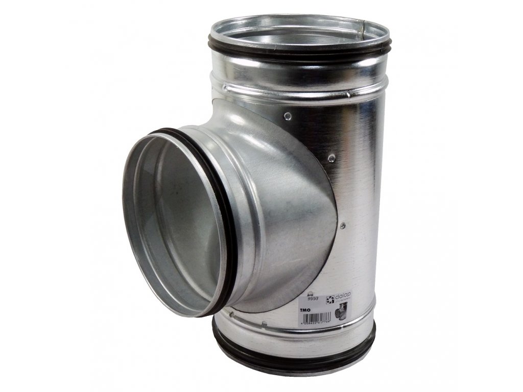 Jednostranná „T“ odbočka z pozinkovaného plechu s gumovým těsněním Dalap TM-O 100/80 slouží ke spojení a k rozdělení kulatých vzduchotechnických potrubí (například Spiro apod.).