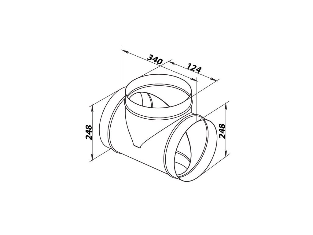Odbočka slouží k rozdělení nebo sloučení vzduchovodů. Odbočka má dlouhodobou životnost. Její montáž je jednoduchá, bez použití složitého nářadí (spoje se do sebe jednoduše nastrčí). Odbočka je vyrobena z pozinkovaného plechu a určena do teploty 100 °C.