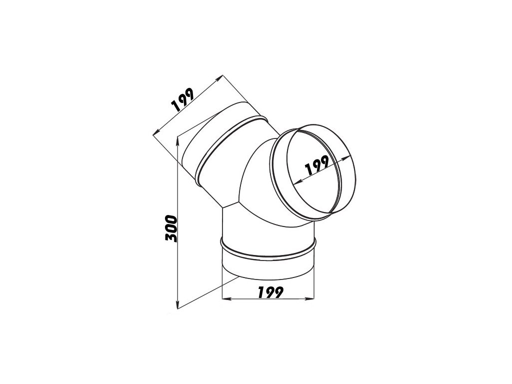Odbočka je určena pro přímou instalaci do potrubních součástí stejného průměru. Na všech třech svých koncích má shodné průměry 200 mm. „Y“ spojka může být součástí prakticky jakéhokoliv ventilačního systému. Jednoduchá instalace zasunutím do potrubí. Y-kus vydrží krátkodobě teplotu až do 100 °C.