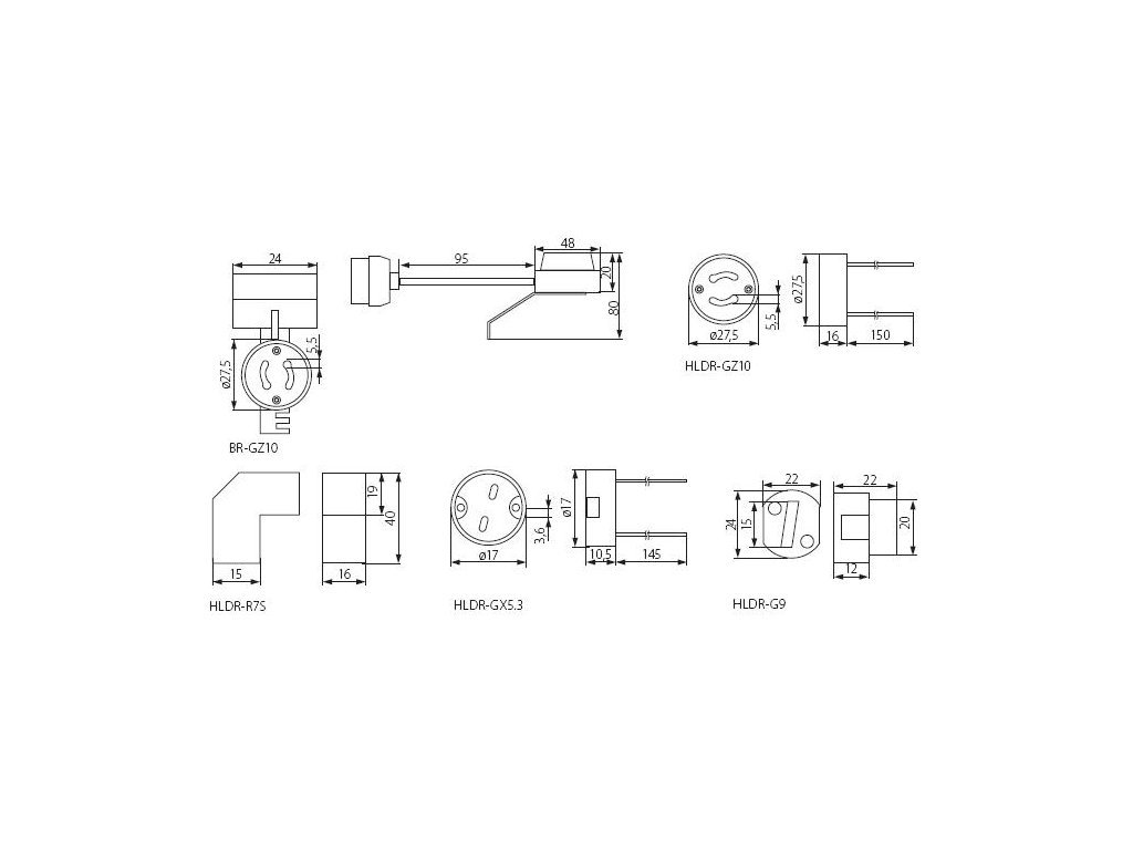 Keramická objímka pro světelné zdroje s paticí G4-GY6,35, maximální napětí 24V, jmenovitý proud 5A