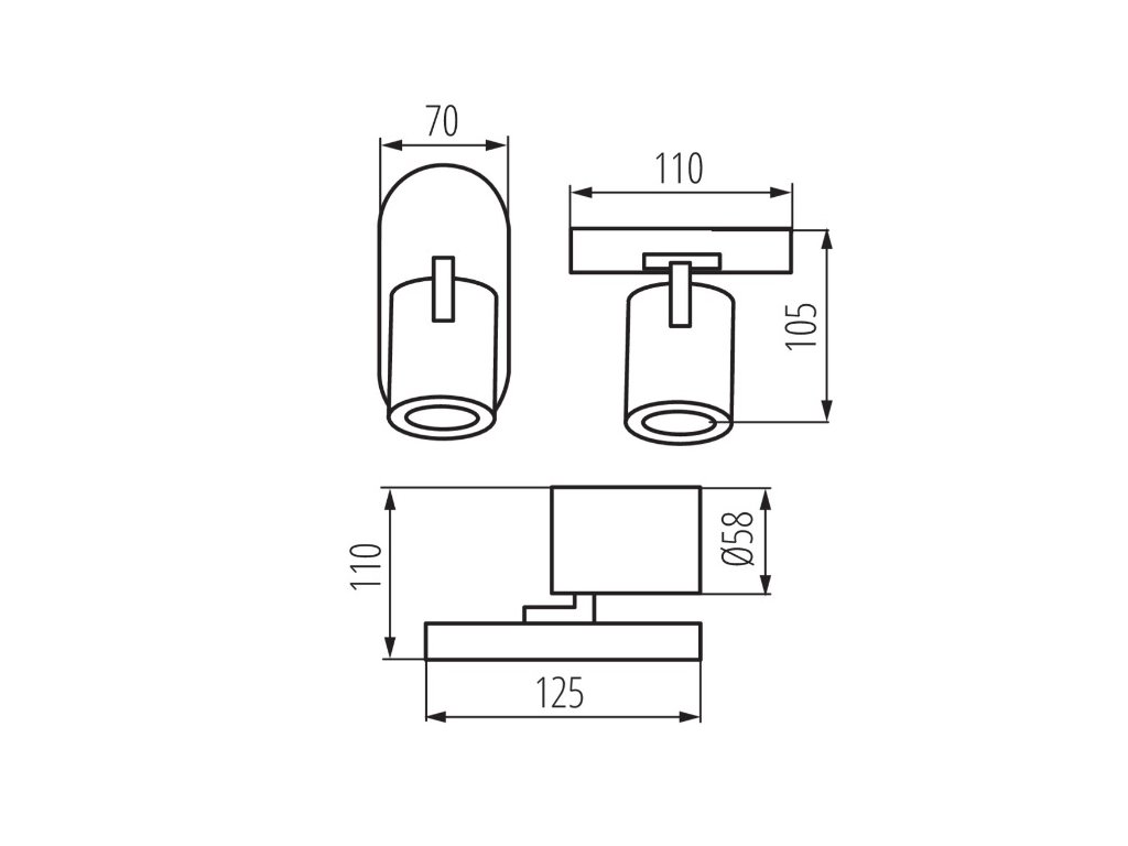 Bodové přisazené svítidlo Kanlux LAURIN EL-1O W pro žárovku GU10/230V. Těleso svítidla je široce nastavitelné ve vertikálním i horizontálním směru a snadno tak nasvítíte předmět, který chcete zviditelnit.