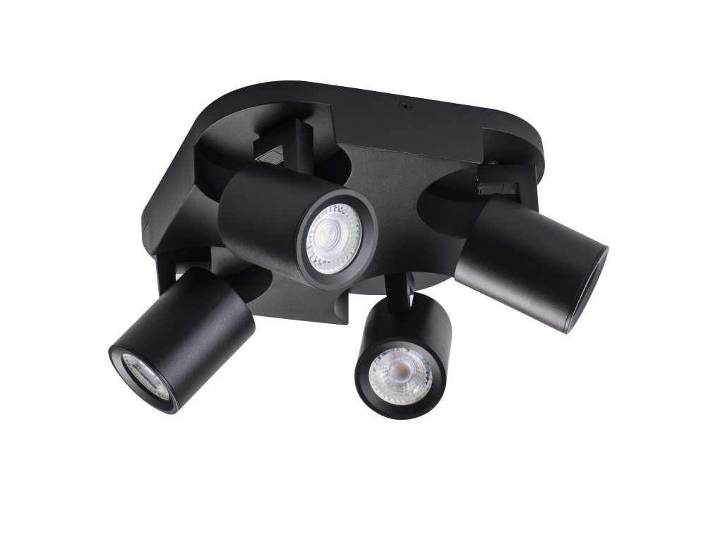 Bodové přisazené svítidlo Kanlux LAURIN EL-4O B pro čtyři žárovky GU10/230V. Těleso svítidla je široce nastavitelné ve vertikálním i horizontálním směru a snadno tak nasvítíte předmět, který chcete zviditelnit.