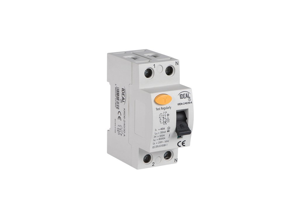 PROUDOVÝ CHRÁNIČ dvoupólový Kanlux, IDEAL TS KRD6-2/16/10, k ochraně elektrických obvodů před svodovými proudy a k ochraně osob před úrazem elektrickým proudem.