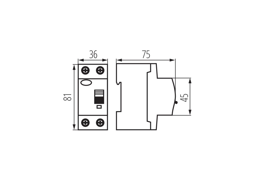 - Jmenovitý reziduální proud: 0,03 A (30 mA)