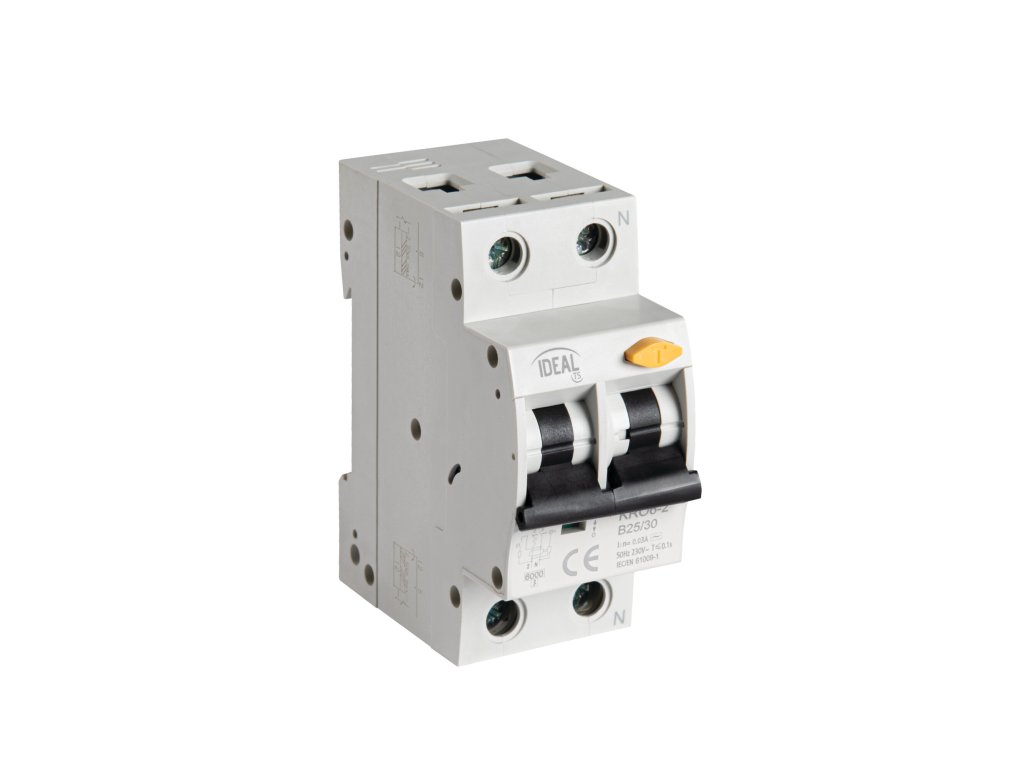 Proudový chránič s jističem KRO6-2/B25/30 - KOMBINACE JISTIČ-CHRÁNIČ, kombi, slouží k ochraně elektrických obvodů a spotřebičů před účinky přetížení a zkratu, k ochraně elektrických obvodů před svodovými proudy a k ochraně osob před úrazem elektrickým proudem. Shoda s normou: EN / IEC 61009-1.