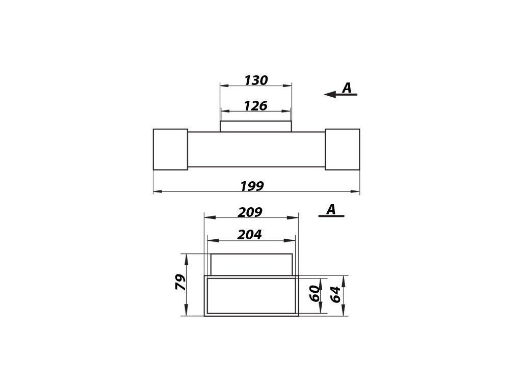 Plastová roztrojka 632 pro spojení hranatého vzduchového potrubí o rozměrech 2x 204x60 mm a průměru 1x 125 mm