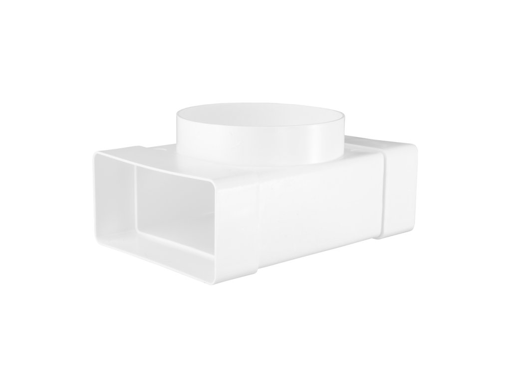 Ventilační prvek je určen pro rozdělení či sloučení hranatého potrubí s kulatým. Velmi jednoduchá instalace zasunutím do potrubí. Roztrojka vydrží teplotu až 40 °C.