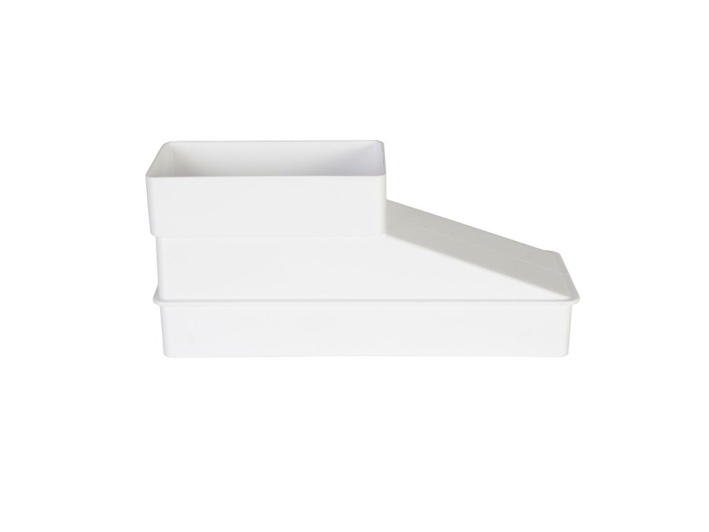 Hranatá plastová přechodka Dalap 5181 z rozměru 204x60 na 110x55 mm.
