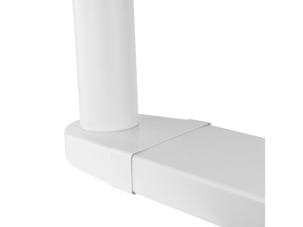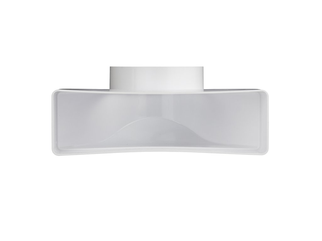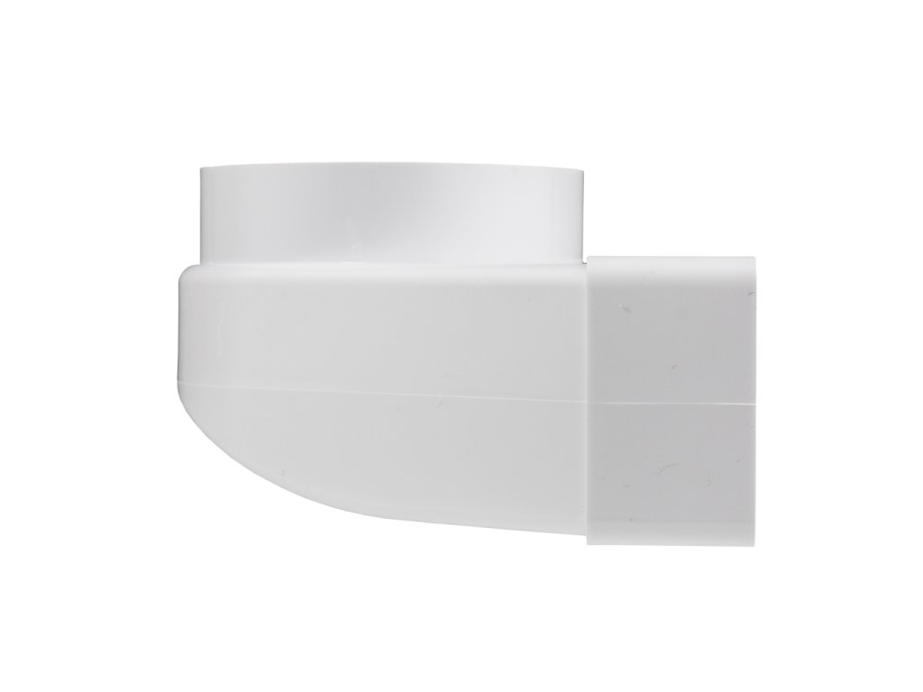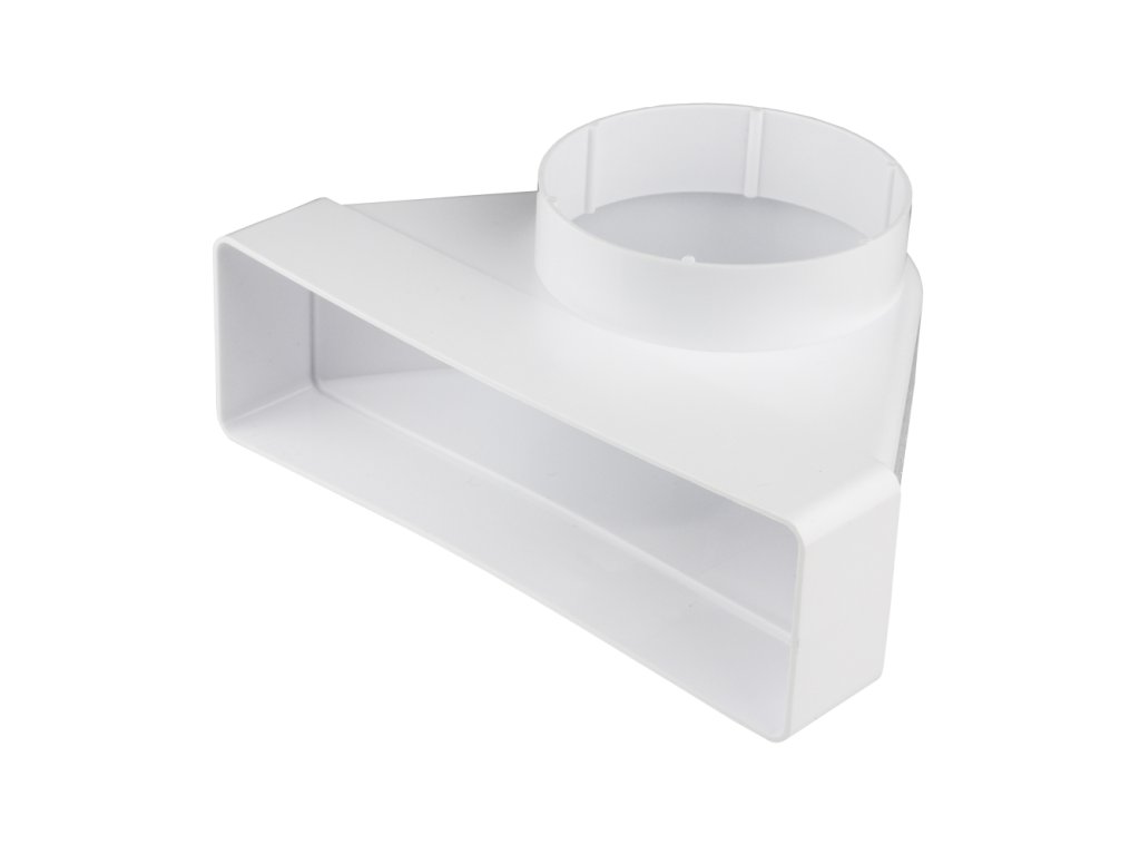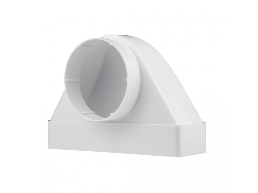 Kvalitní plastová redukce s ohybem 90° z průměru 100 mm na hranaté potrubí 204x60 mm v bílé barvě. Je vyrobena z kvalitního plastu s ABS příměsí, která nežloutne vlivem slunečního záření. Redukce je určena do teploty 50 °C.