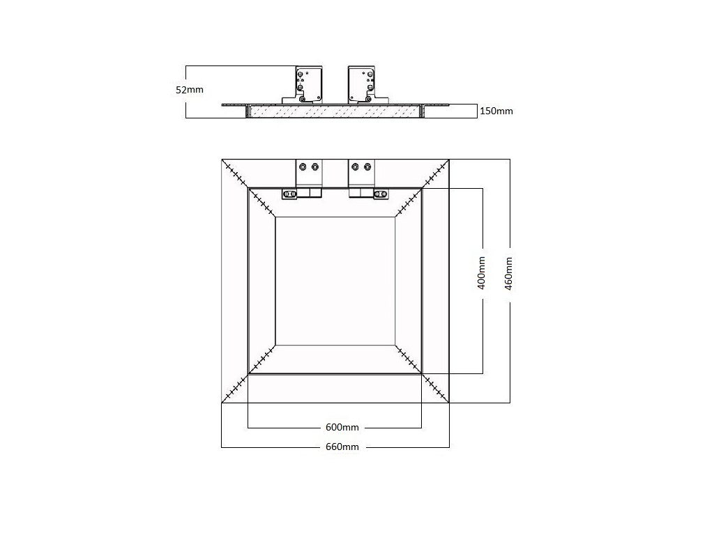 Montáž: Revizní dvířka se připevňují na profily samořeznými vruty. Univerzální upevnění na pravou nebo levnou stranu otvoru. Dvířka jsou již vybavena čelní sádrokartonovou deskou o patřičném rozměru.