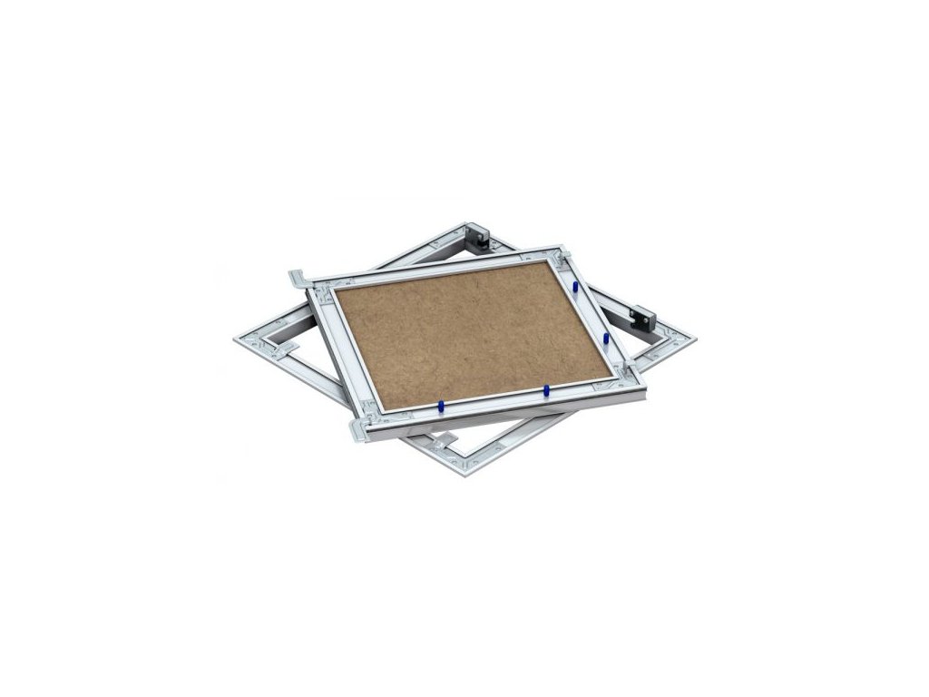 Hlavní nosná konstrukce dvířek a rám jsou vyrobeny z hliníkového profilu osazené sádrokartonovou deskou (GKBi - zelená) o síle 12,5 mm upevněnou do vnitřního rámu pomocí samovrtných šroubů. Dvířka jsou vyráběná ze speciálních hliníkových profilů, které jsou lisováním spojené do venkovního a vnitřního rámu pomocí výztužných pozinkovaných rohů. Kompletní sestava není spojena pomocí pevného pantu a umožňuje tak vyjmutí křídla dvířek v případě potřeby. Součástí vnitřního rámu je kartáčkové těsnění, které zabraňuje profukování prachu ze šachty do místnosti. Dvířka byla zkoušena na vzduchovou průvzdušnost v kategorii 2 podle normy ČSN EN 1026.