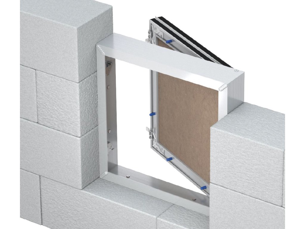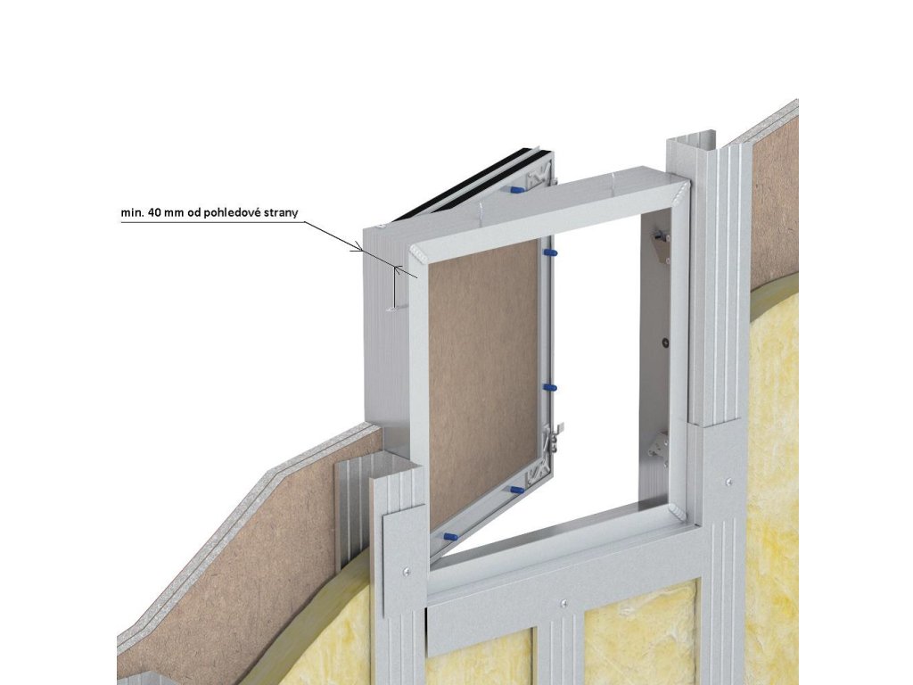 Tato revizní dvířka jsou určena pro montáž do sádrokartonové stěny tloušťky 12,5, 15 i 25 mm, kde se upevnění pomocí vrutů TEX 4,2x13 mm k ocelovým profilům a zároveň lze tyto dvířka zabudovat i do zdiva pomocí vrutů 4,2x75 mm. Upevnění v obou případech se provádí skrze vnější rám dvířek – viz přiložený návod.
