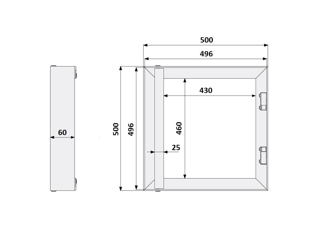 Revizní dvířka kouřotěsná RFS 500x500x25 GKF US EI30/45 (Sm) stěna/zdivo
