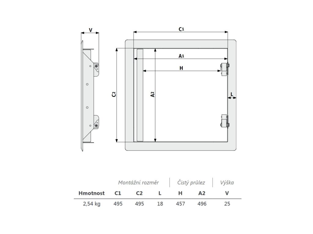 Revizní dvířka kovová RDp 500x500 US tlačný zámek, bílá