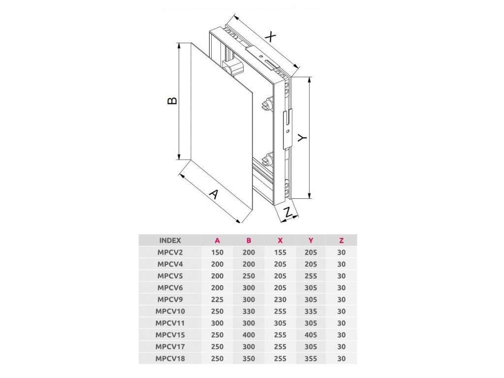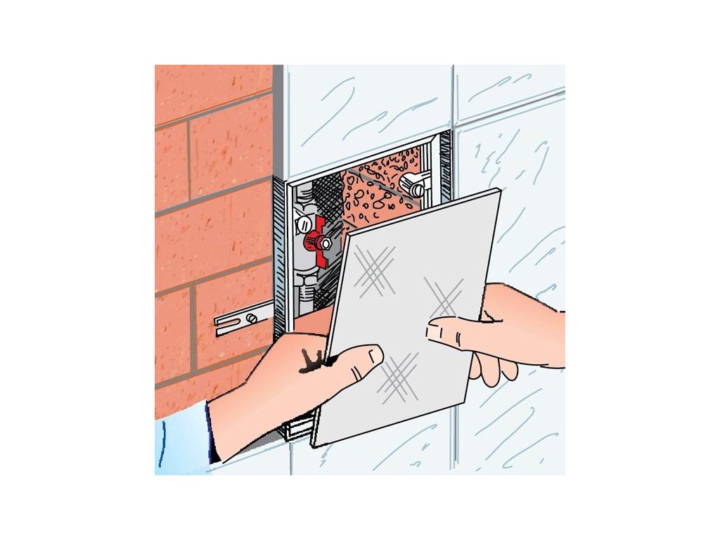 Revizní, dvířka, MPCV2, 15 x 20, cm, pro, nalepení, obklady, obkladů, poklop, šachta, do, šachty, šachtová, otvory, skrytá, neviditelná, maskovací, WC, vanová, vanu, koupelnová, stoupaček, stoupačky, servisní, magnetická, instalační.