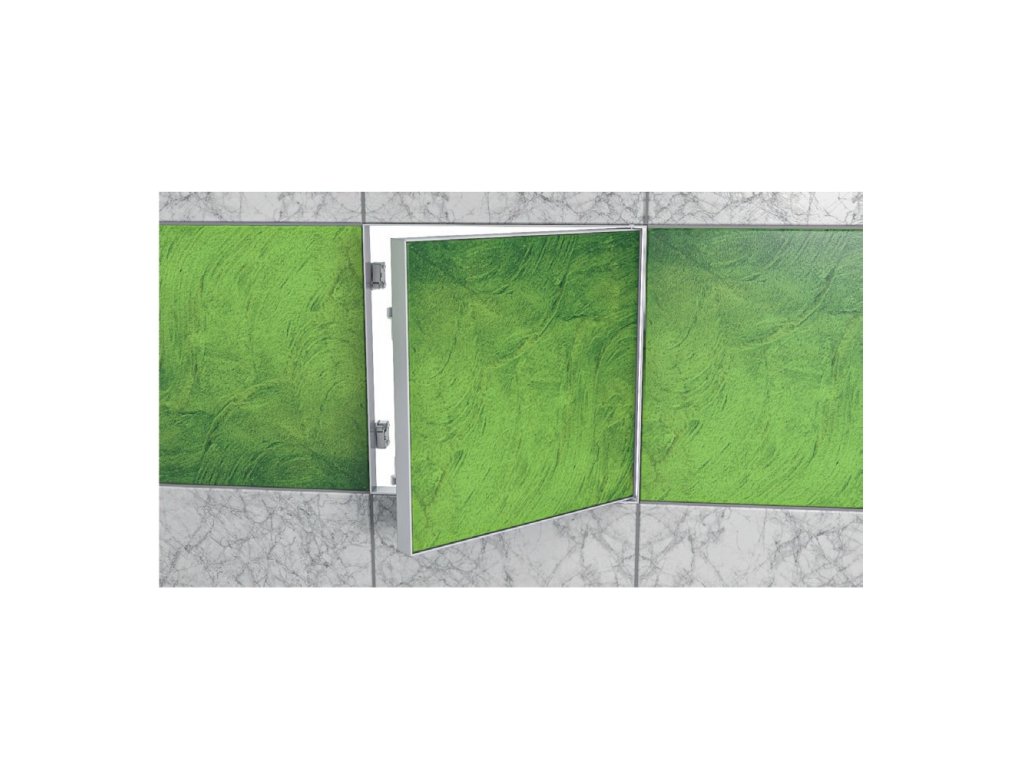 Revizní dvířka RDS 300x400 GKBi US jsou určeny pro montáž do sádrokartonové stěny. Výplň dvířek je tvořena impregnovanou SDK deskou (GKBi - zelená), upevněnou pomocí samovrtných šroubů, která je zapuštěná do hliníkového rámu vnitřního křídla jako podklad pro keramický obklad. Dvířka lze obložit obkladem do tloušťky 13 mm (lepidlo + obklad). Rámeček zůstává viditelný a přiznaný.