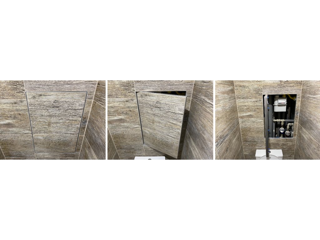 Použití: Revizní dvířka pod obklad jsou vhodná pro sádrokartonové desky o síle 12,5 mm. Dvířka umožňují rychlý a pohodlný přístup k revizním otvorům, jako jsou uzávěry vody, plynu, vzduchotechniky atd. Vhodné do místností a prostorů s vysokou vlhkostí, jako jsou koupelny, toalety apod. Mechanismus otevírání, který zajišťuje bezpečné uzavření. Otevírání zatlačením – otevřít a zavřít (tlakový zámek).