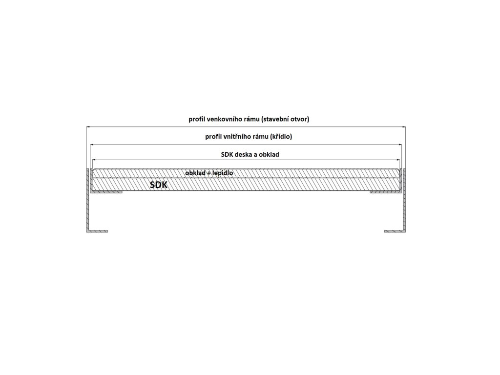 Dvířka jsou již vybavena čelní sádrokartonovou deskou o patřičném rozměru. Obklad není součástí.