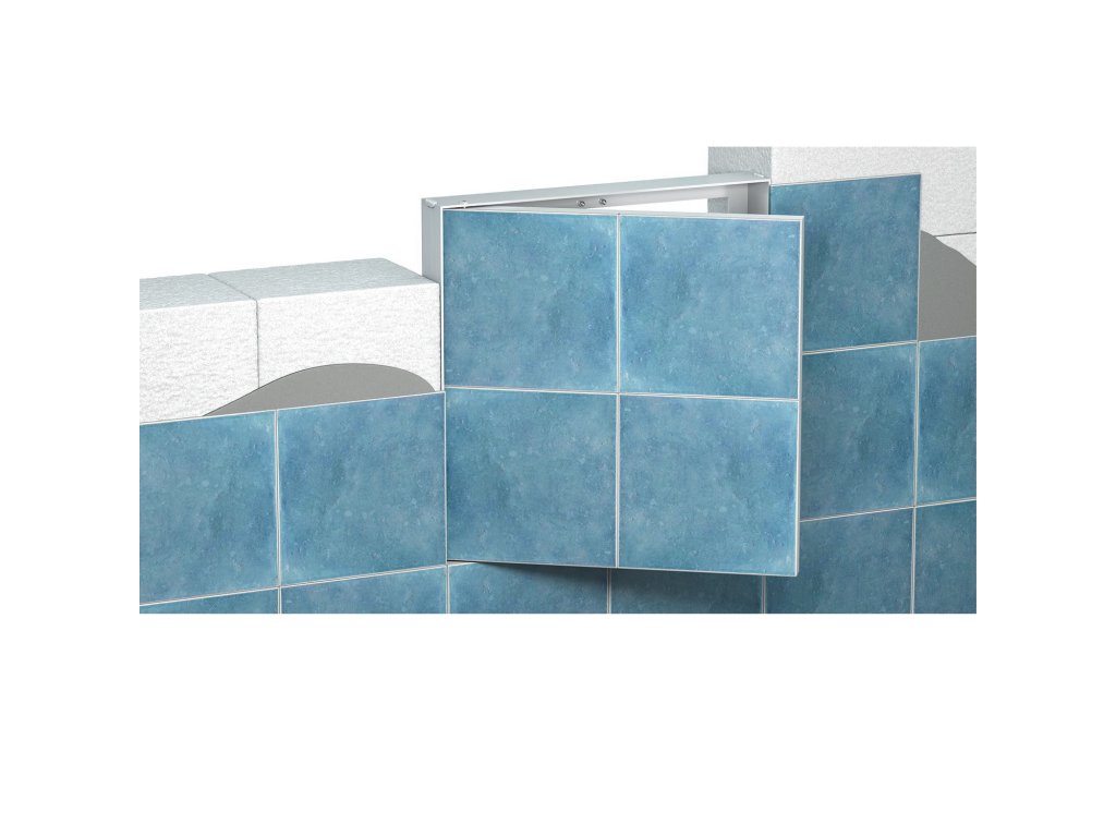 Použití: Revizní dvířka pod obklad jsou určena do zděné stěny. Dvířka umožňují rychlý a pohodlný přístup k revizním otvorům, jako jsou uzávěry vody, plynu, vzduchotechniky atd. Vhodné do místností a prostorů s vysokou vlhkostí, jako jsou koupelny, toalety apod. Mechanismus otevírání, který zajišťuje bezpečné uzavření. Otevírání zatlačením – otevřít a zavřít (tlakový zámek).
