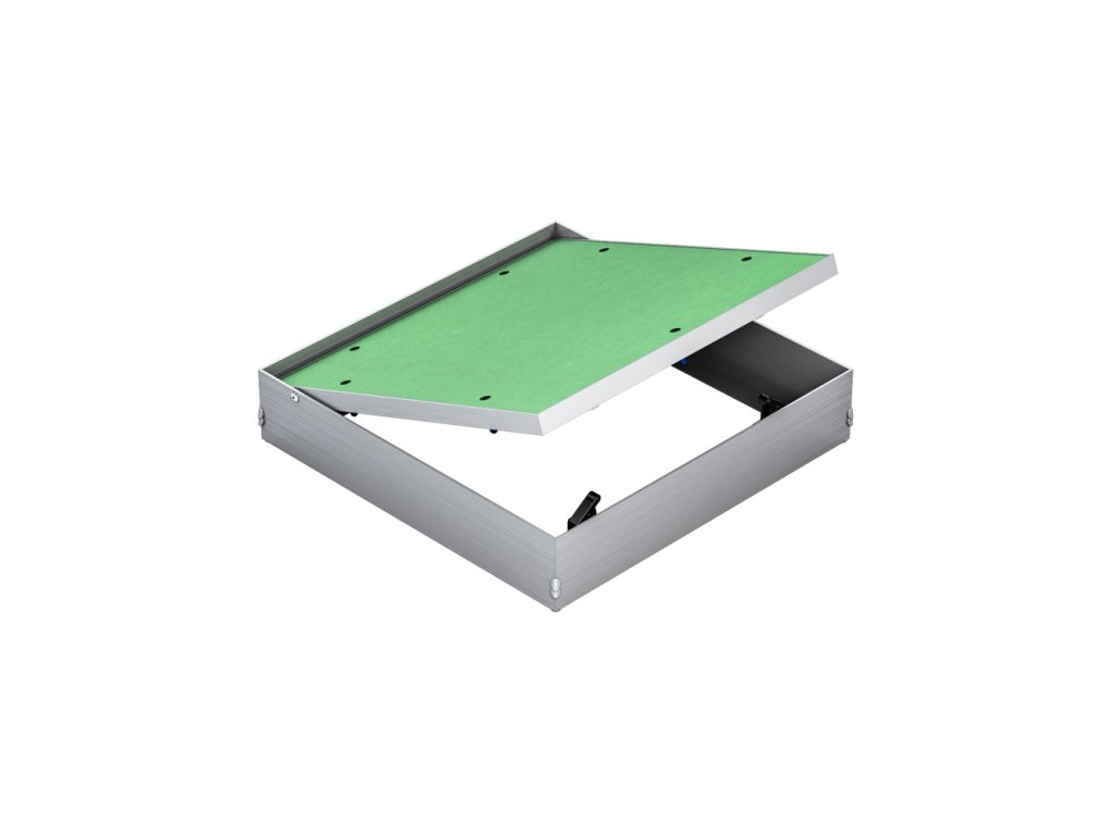 Revizní dvířka pod obklad do zdiva 700 x 700 x 12,5 s US tlačným zámkem jsou určena pro montáž do zdiva a zděných systémů stěny. Dvířka jsou vyráběná z hliníkových profilů, které jsou svařovány do venkovního a vnitřního rámu. Kompletní sestava je spojena pomocí pevného pantu a umožňuje tak otevírání křídla dvířek v případě potřeby. Výplň vnitřního rámu je tvořena zelenou sádrokartonovou impregnovanou deskou, upevněnou pomocí samovrtných šroubů. Panty jsou posunuté a křídlo dvířek připraveno pro nalepení keramického obkladu.