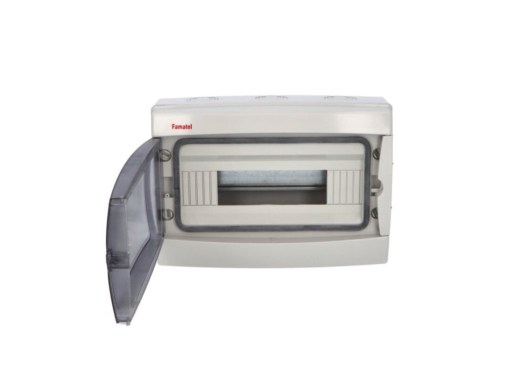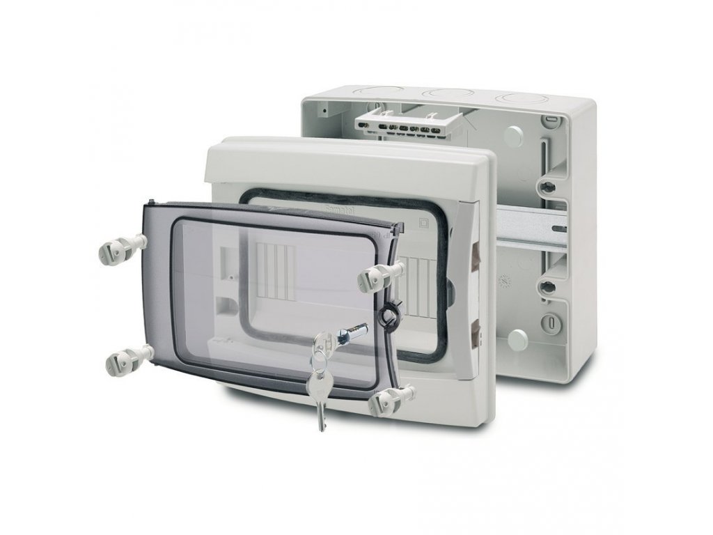 Plastová rozvodná skříň Acqua 3912-TTB ve vyšším krytí IP65 s průhledným okénkem a s modulovým prostorem pro 12 modulů v jedné řadě k osazení jističů, chráničů apod. Rozvodnice je vhodná pro obecné i průmyslové aplikace, ve kterých je požadován vysoký stupeň krytí IP - rozvodnice s krytím IP65. Provedení rozvodnice je přizpůsobeno k povrchové montáži.