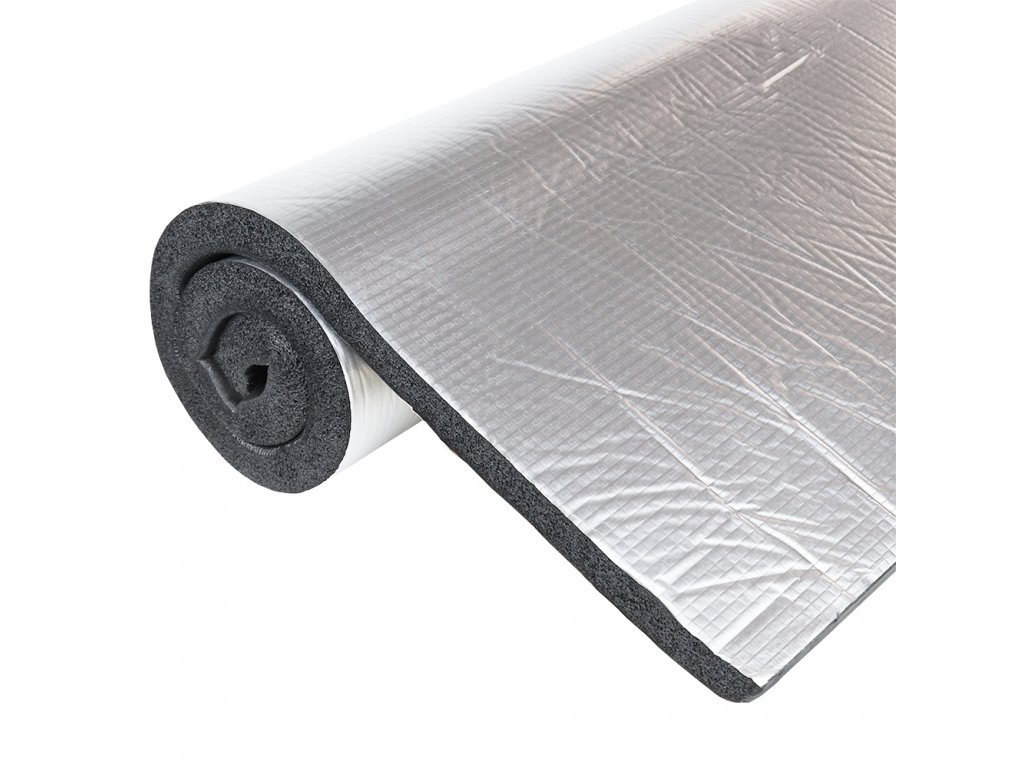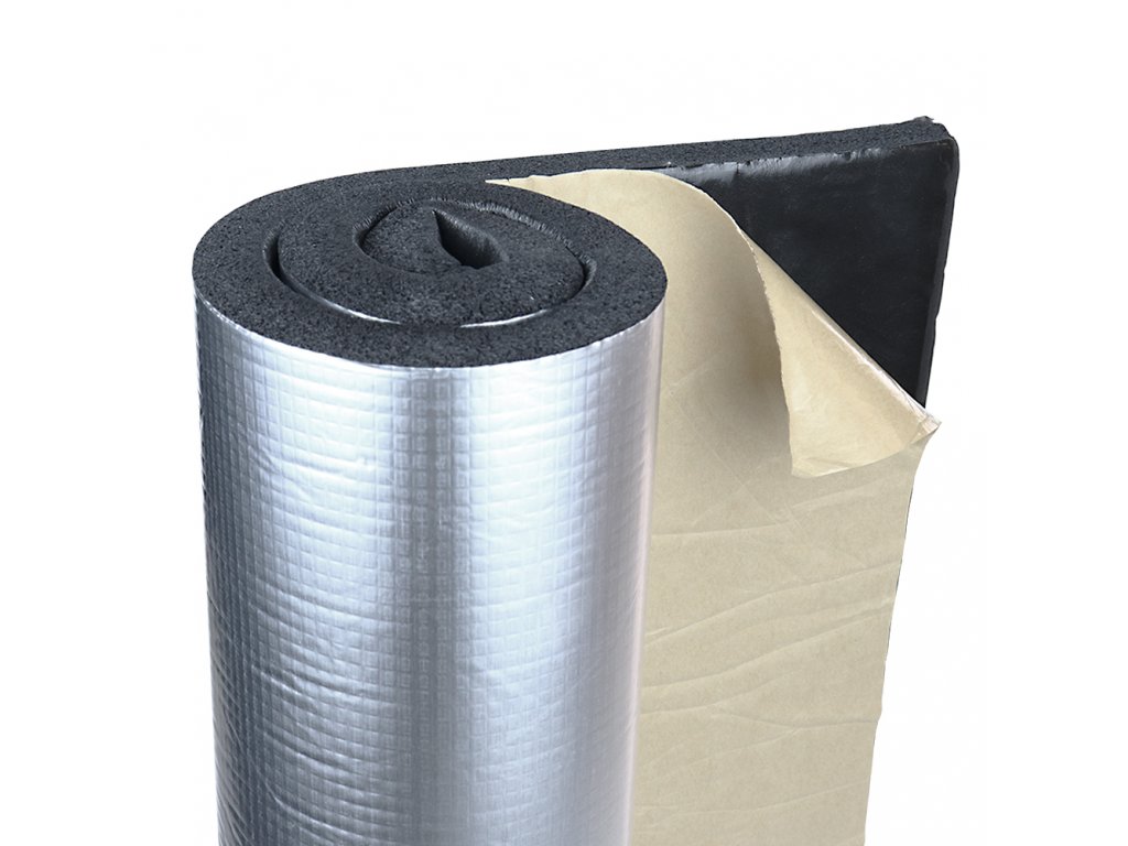 Střed izolace tvoří pěnová vrstva, která slouží jako hlavní tepelný izolant. Na jedné straně je laminovaná hliníkovou fólií, která zvyšuje izolační vlastnosti. Druhá strana izolace je opatřena silným samolepicím pojivem, které zajišťuje vynikající přilnavost a pevné spojení s různými povrchy, včetně plastových a kovových. Tato kombinace materiálů a vlastností zaručuje vysokou účinnost a dlouhou životnost tepelné izolace.